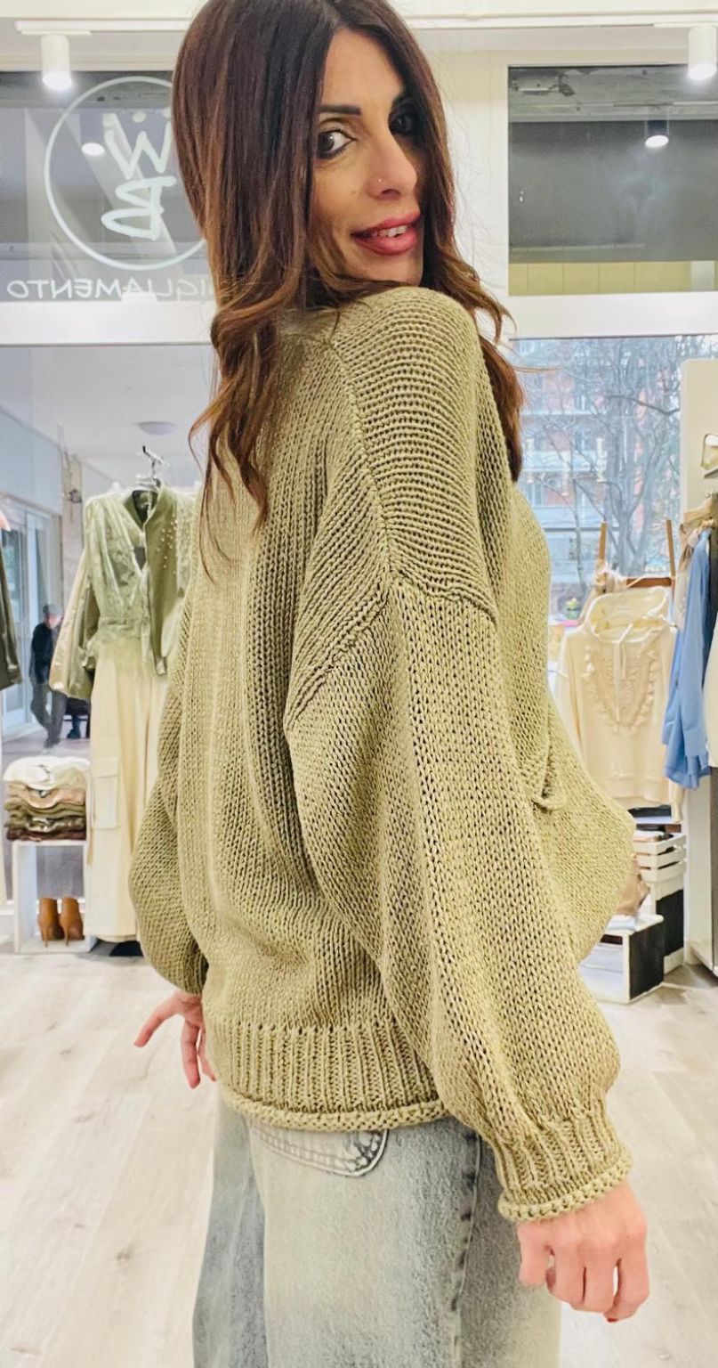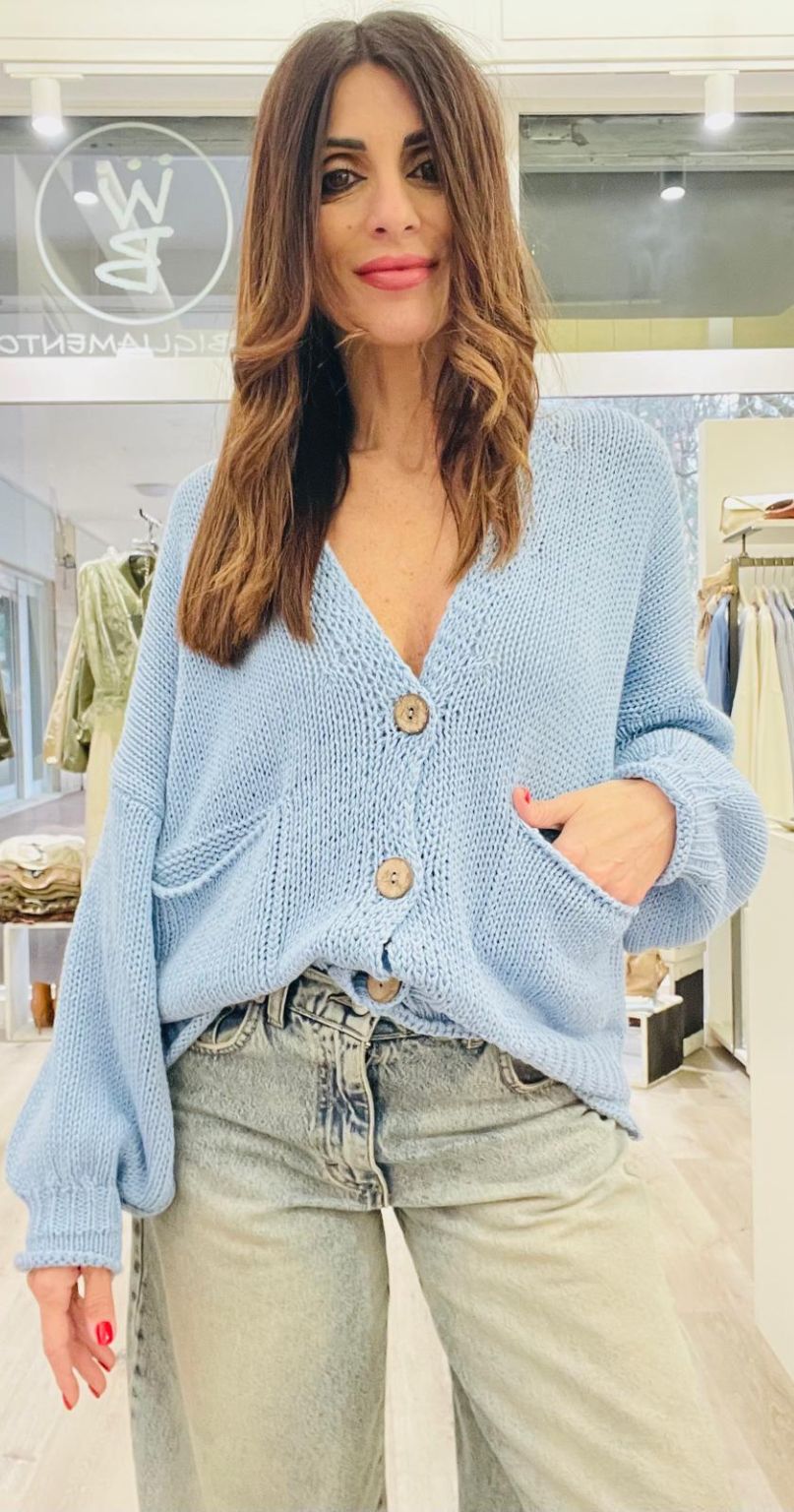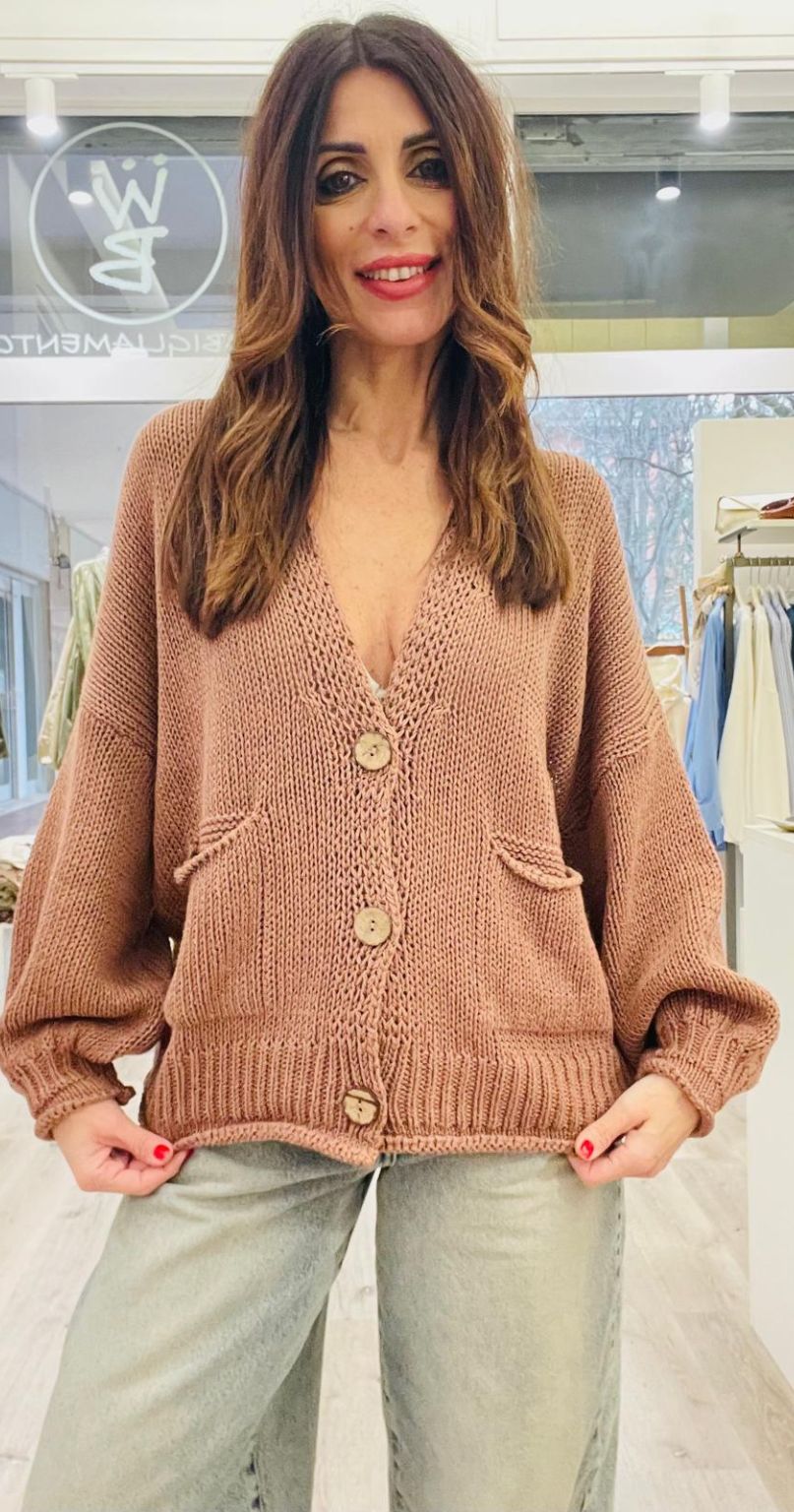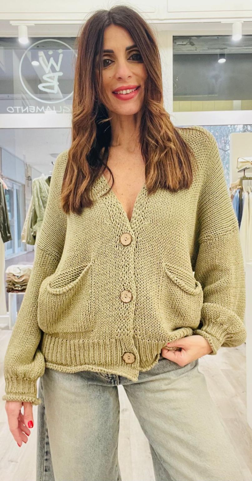 Haveone Cardigan con scollo a V e 3 bottoni, taschine frontali.