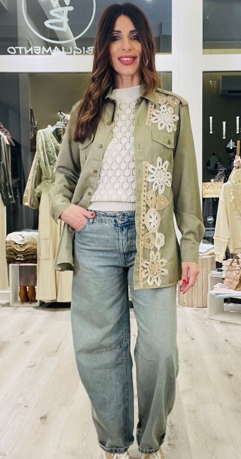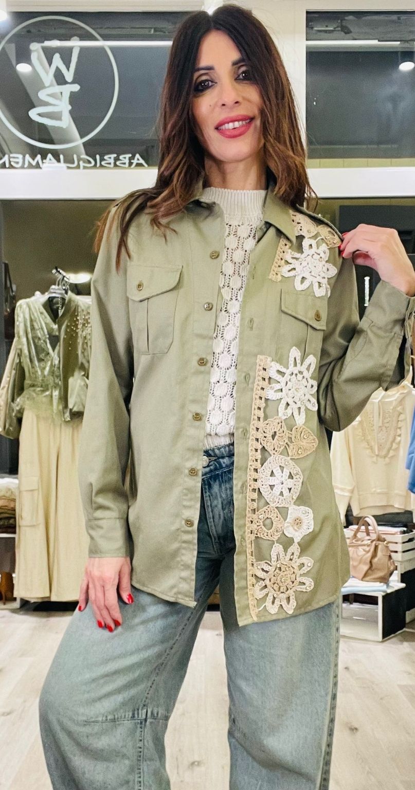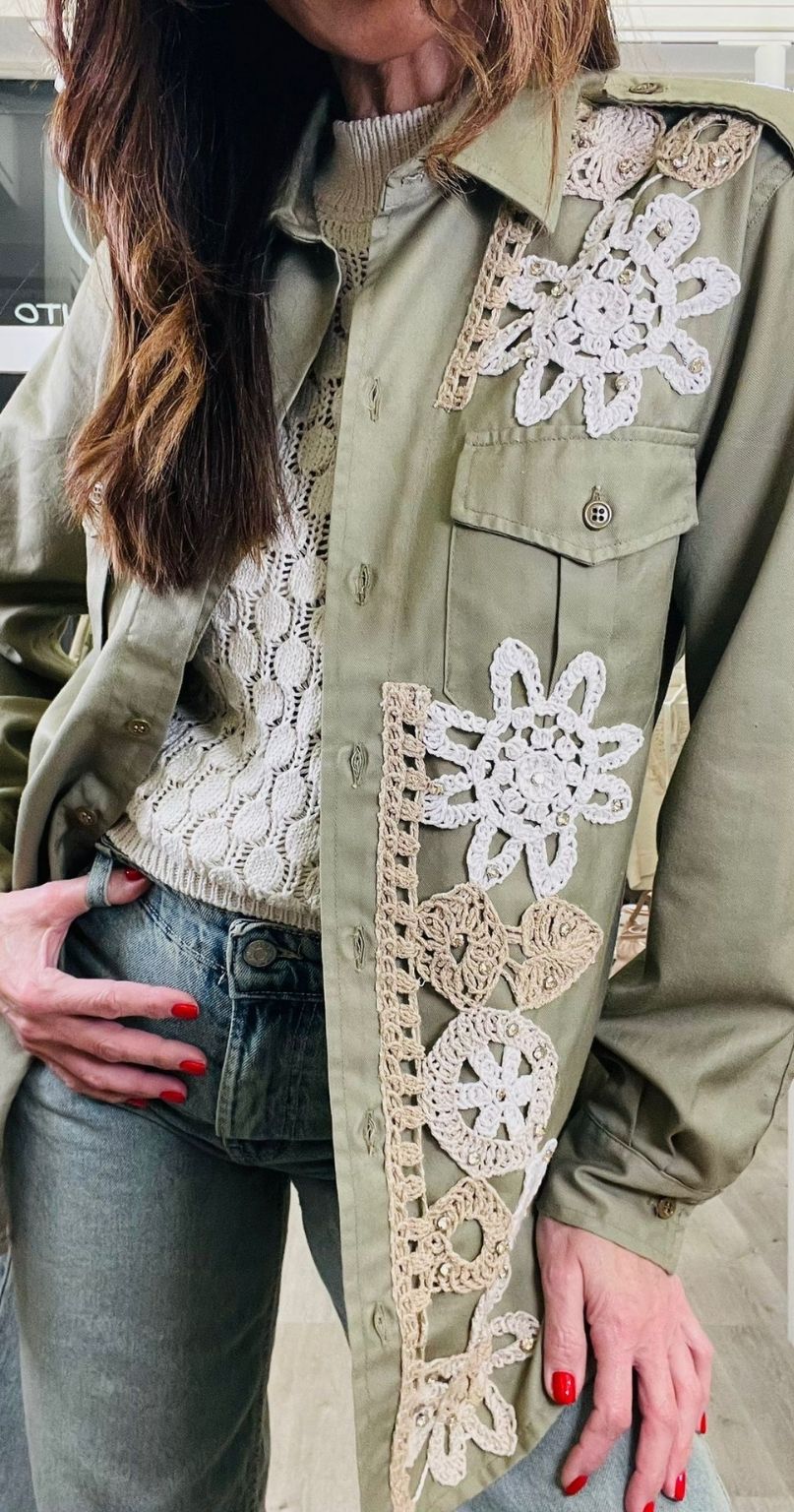 Susy Mix Camicia vintage con ricami all’uncinetto colorati e strass