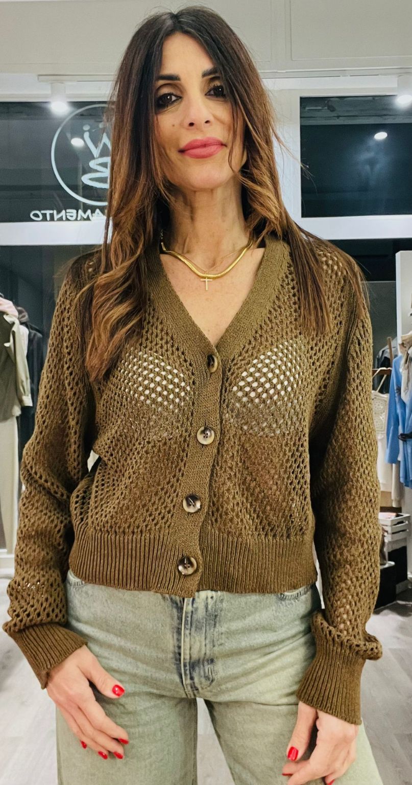 Susy Mix Cardigan traforato con scollo a V