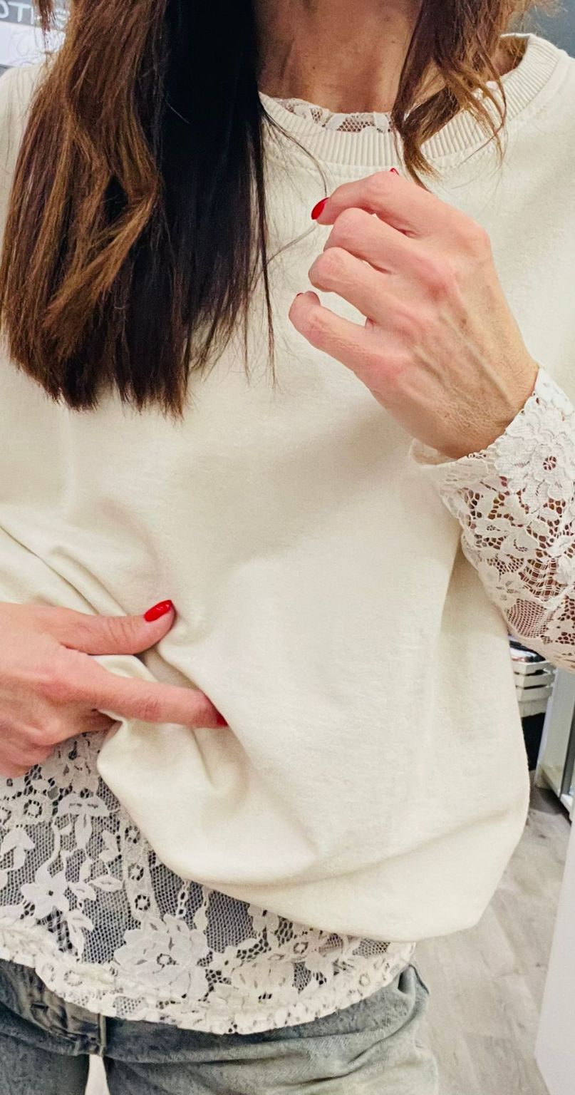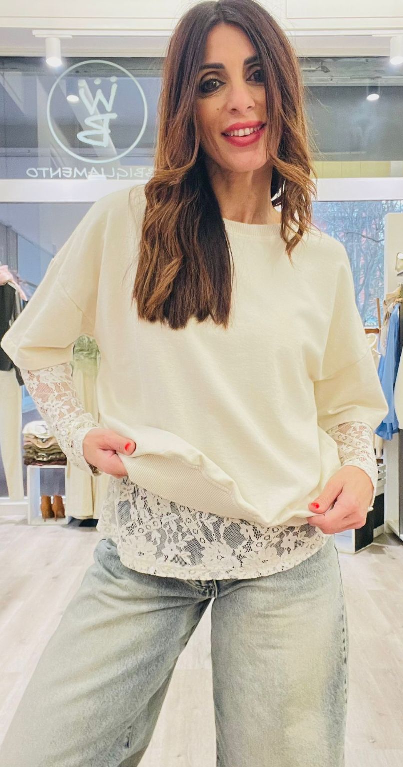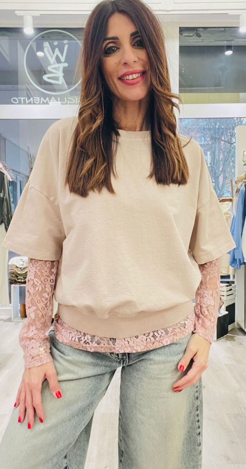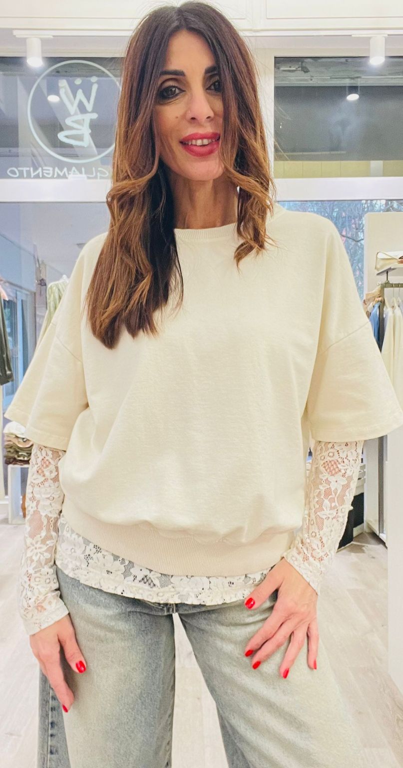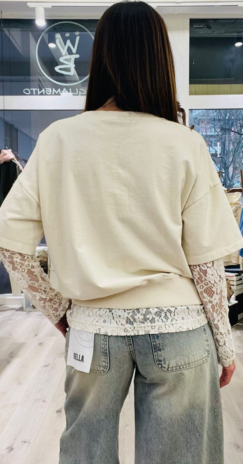 Felpa a maniche corte in cotone + maglia in pizzo a manica lunga.