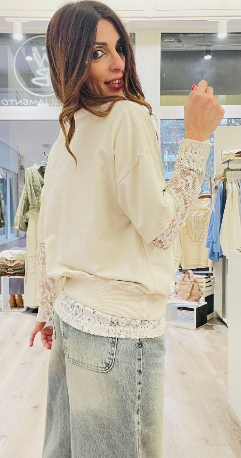 Susy Mix Felpa cotone manica corta + maglia pizzo
