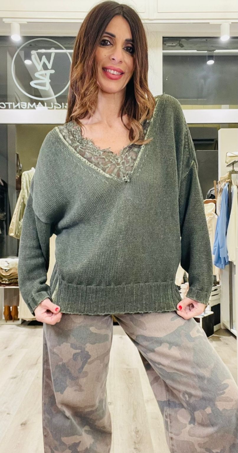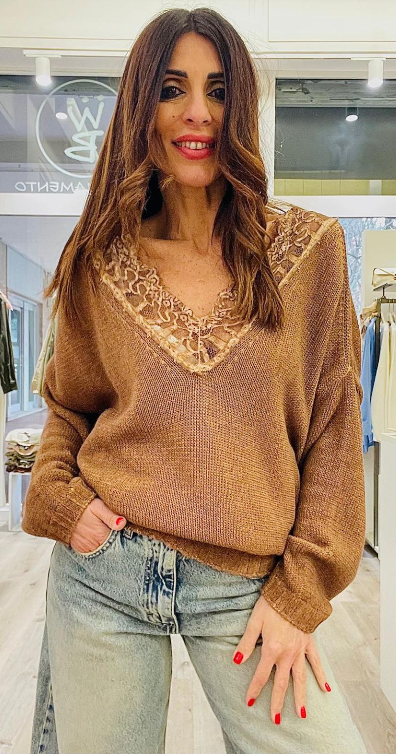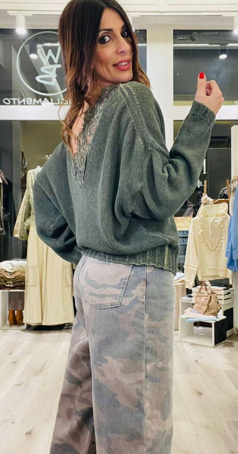 Tensione In, Maglia in cotone con scollatura a V anche sulla schiena rifinita con pizzo