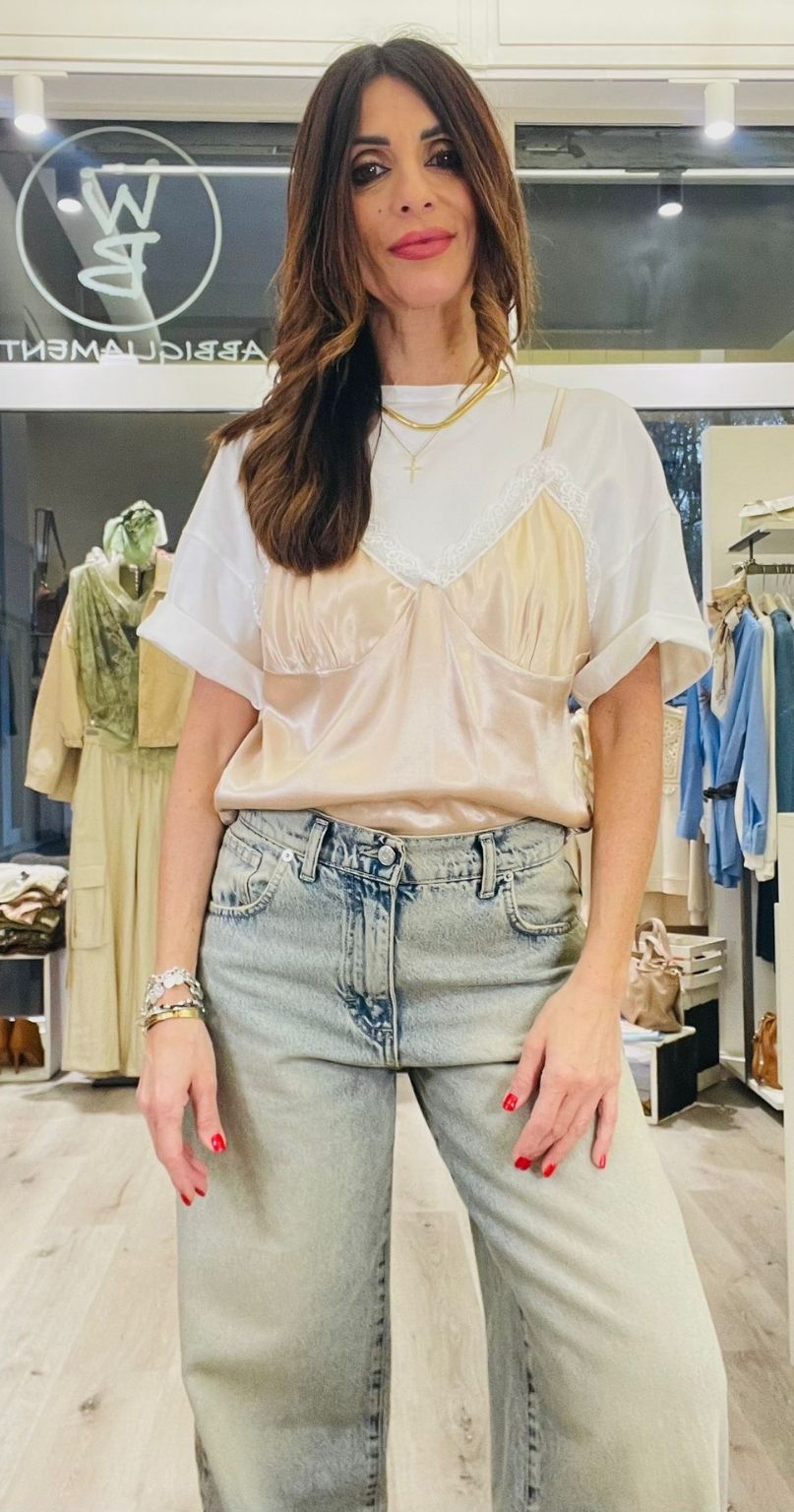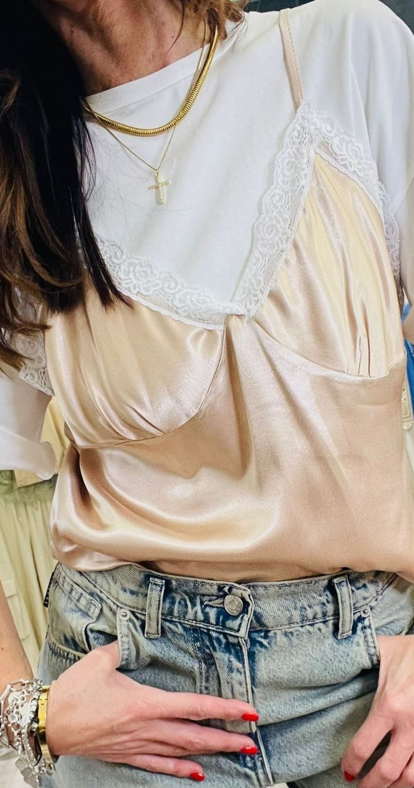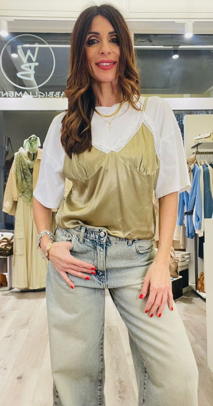 Tensione In T-shirt con top in viscosa lucida con bratelline regolabili