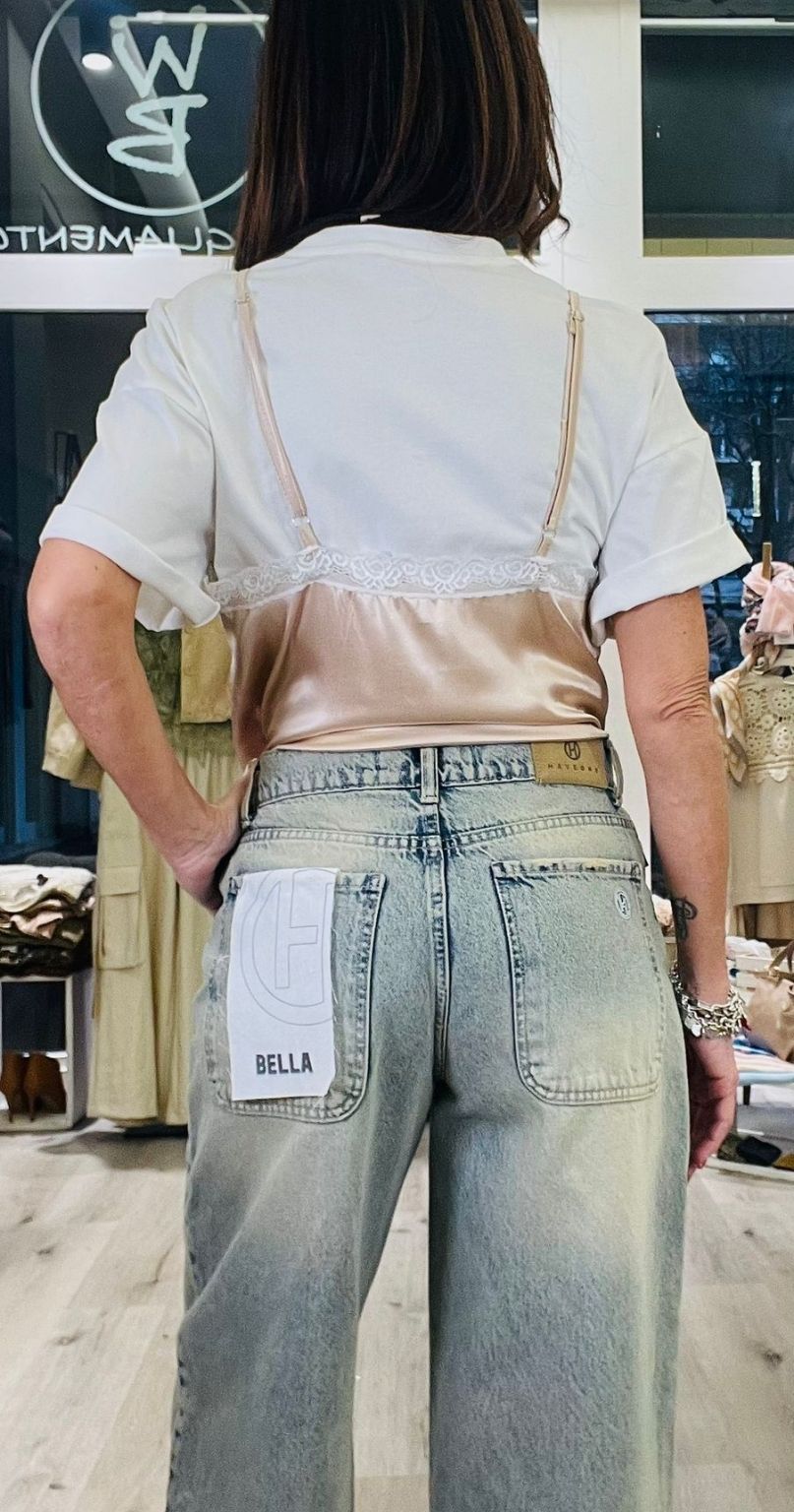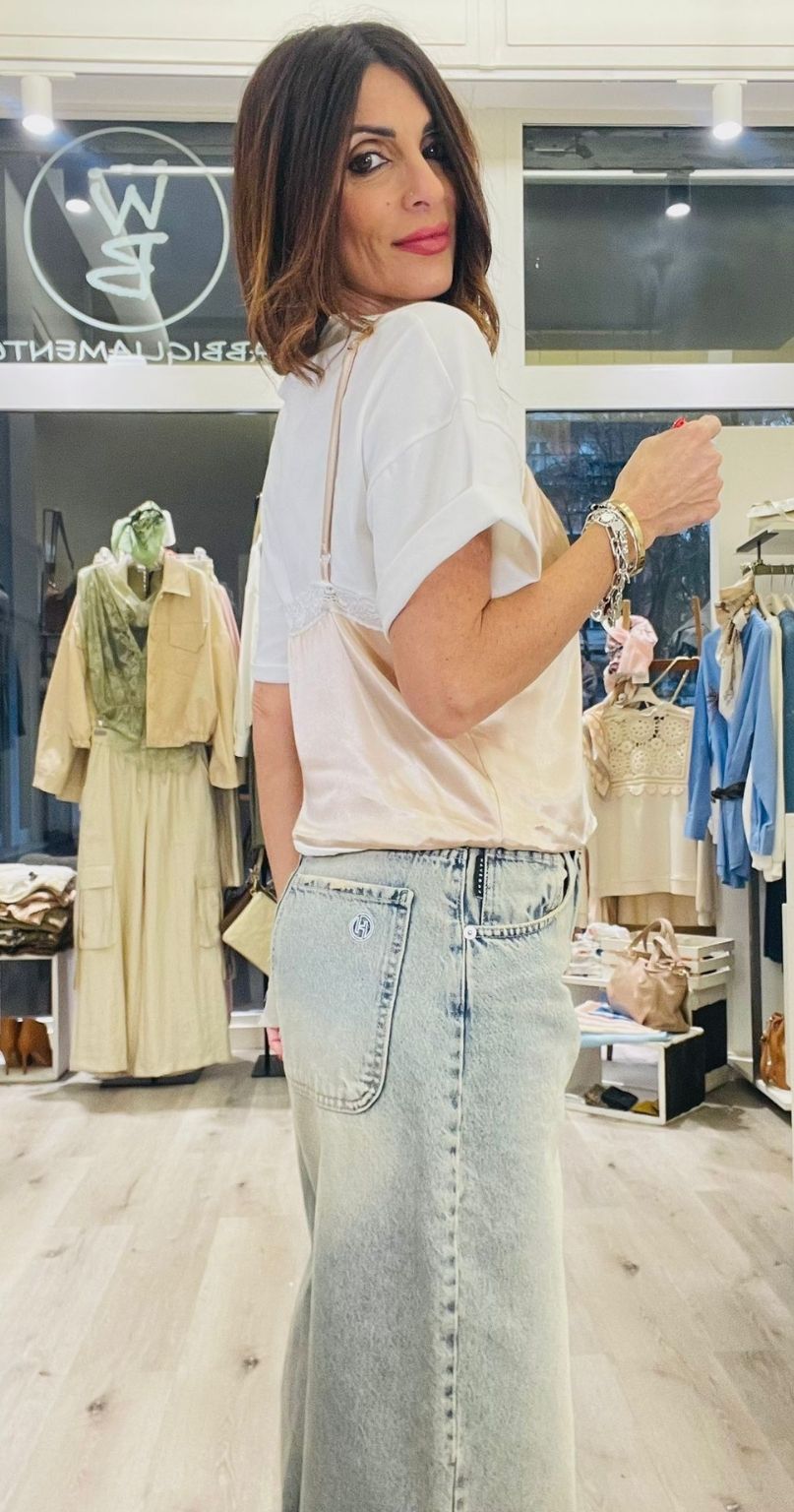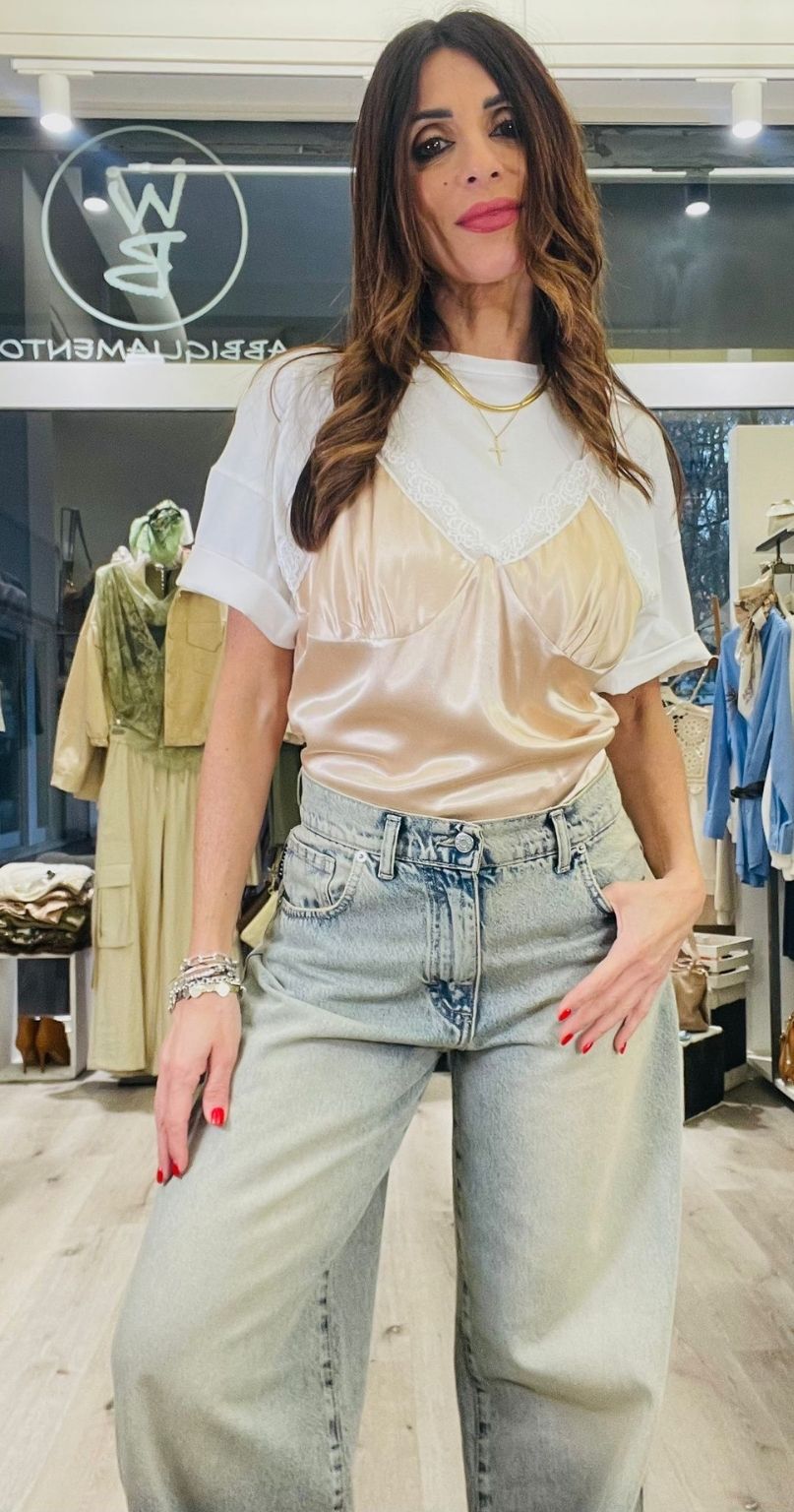 Tensione In T-shirt con top in viscosa lucida con bratelline regolabili